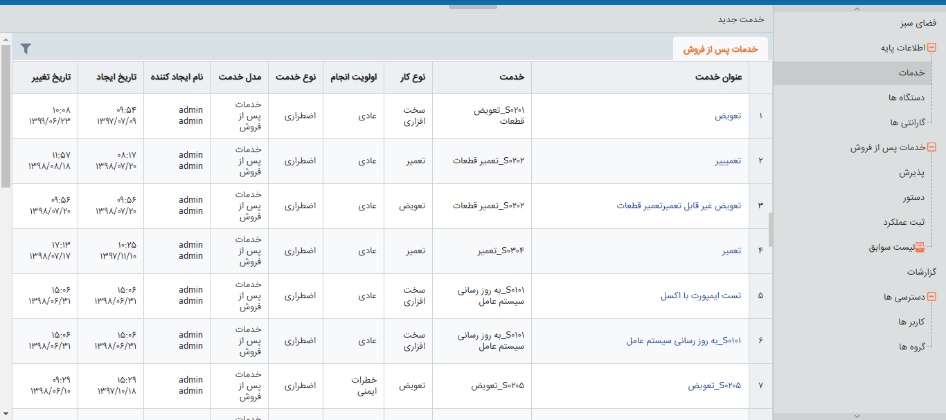 در نرم افزار خدمات پس از فروش تیمیار، امکان گزارشگیری و مشاهده لیست سوابق درخواست، دستور و ثبت عملکرد وجود دارد.